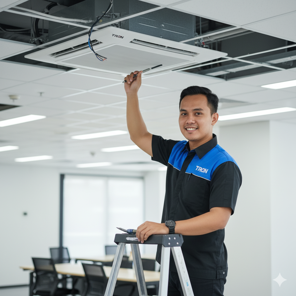 AC Cassette adalah jenis air conditioner (pendingin udara) yang dirancang untuk dipasang di plafon (langit-langit) ruangan. Desainnya ramping dan elegan, sehingga sangat cocok digunakan di kantor, hotel, restoran, ruang rapat, hingga area komersial yang membutuhkan tampilan bersih tanpa unit menempel di dinding.
