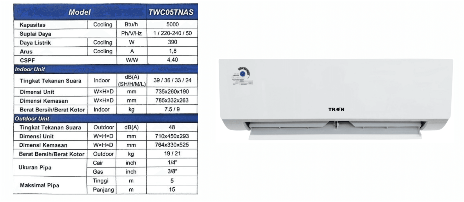 Jadilah yang pertama memberikan ulasan “AC TRON PREMIUM 1/2 PK TWC 05 TNAS” Batalkan balasan